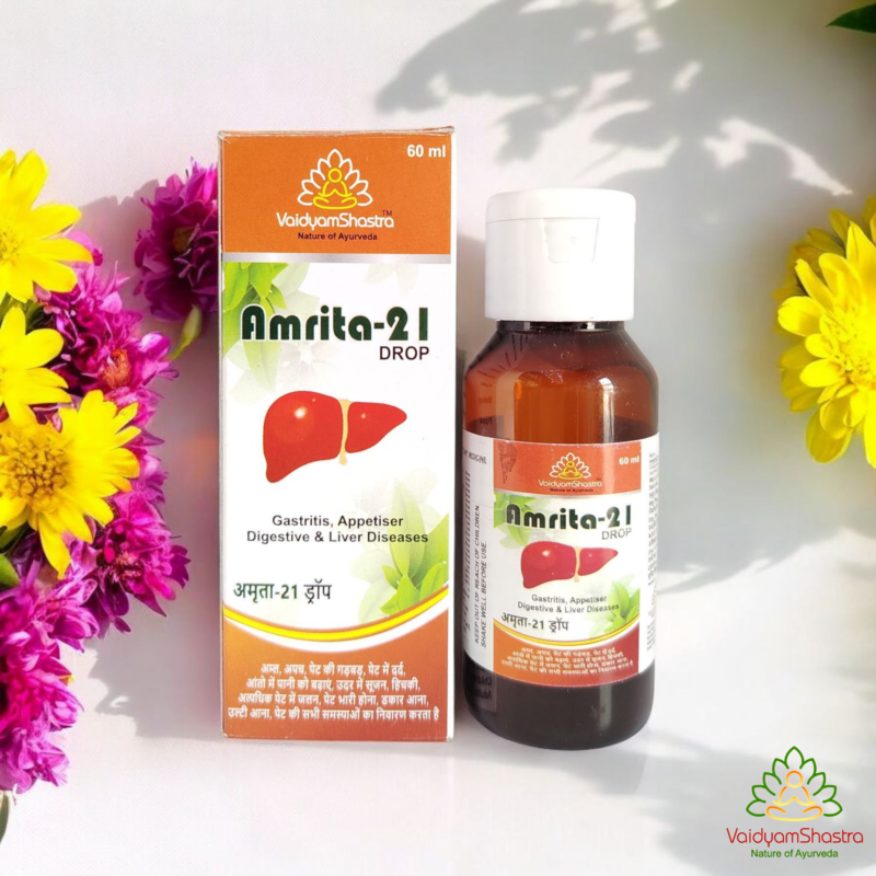 Vaidyam Shastra Ayurveda- Amrita-21 Drop- Hepatitis, Protect Liver & Digestion (For All Age)
