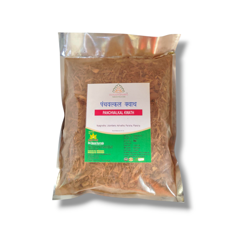 Vaidhyam Shastra Ayurveda- panchvalkal Kwath(Dry Kwath)- Panchwalkal Kwath use to Treat Wound Healing, Reducing Inflammation & Promoting Cleansing. Antiseptic, Astringent, Antioxidant, Anti-Inflammatory, Ant-Imicccrobial & Healing Properties. It's a traditional herbal remedy often applied externally for treating wounds, Skin condition & canalso be used as a sitz bath for certain internal issues.